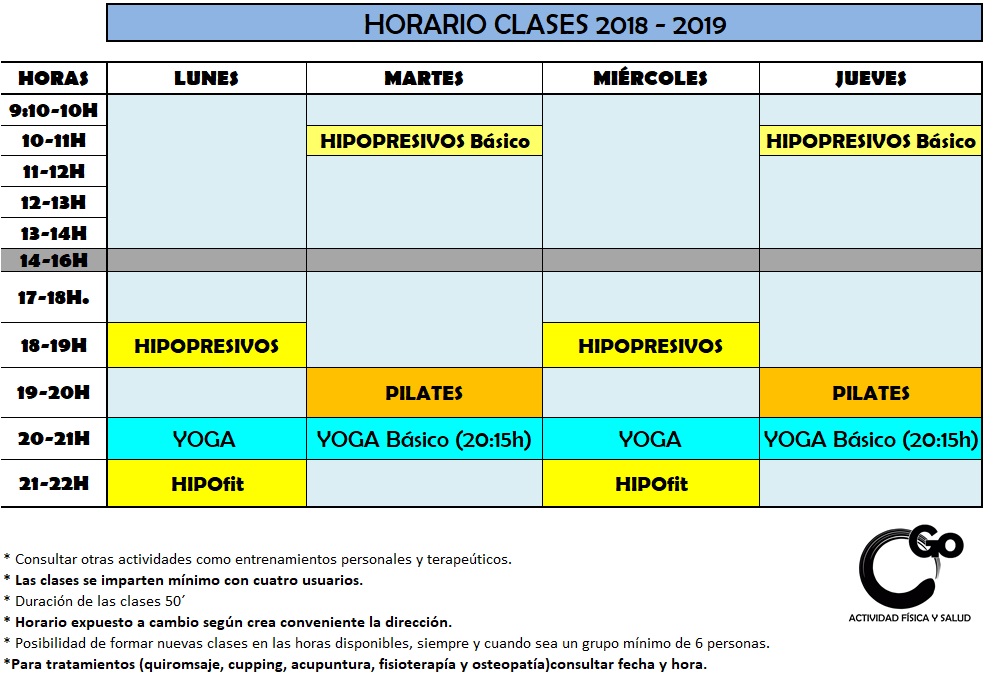 * Posibilidad de formar nuevas clases en las horas disponibles , siempre y cuando sea un grupo mínimo de 6 personas.